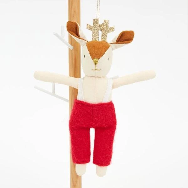 Haz que tu árbol de navidad sea lo más bonito posible con este reno tan mono. Está hecho de forma artesana, de algodón, vestido con un peto rojo y antenas brillantes. Es una decoración que te durará años. Para edades 3+ Dimensiones: 89 x 178 x 25mm