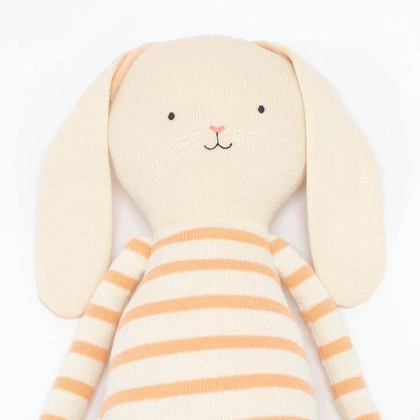 Alfalfa der Hase ist wirklich entzückend. Hergestellt aus gestrickter Bio-Baumwolle mit Floppy-Ohren, süßen bestickten Features und einem fröhlichen Pompom-Schwanz, ist er perfekt zum Kuscheln und Spielen. Geeignet für Kinder ab 3 JahrenGestrickte Bio-BaumwolleKorallenstreifenGenähte Features, Floppy Ohren & Pompom SchwanzProduktabmessungen: 191mm x 584mm x 102mm