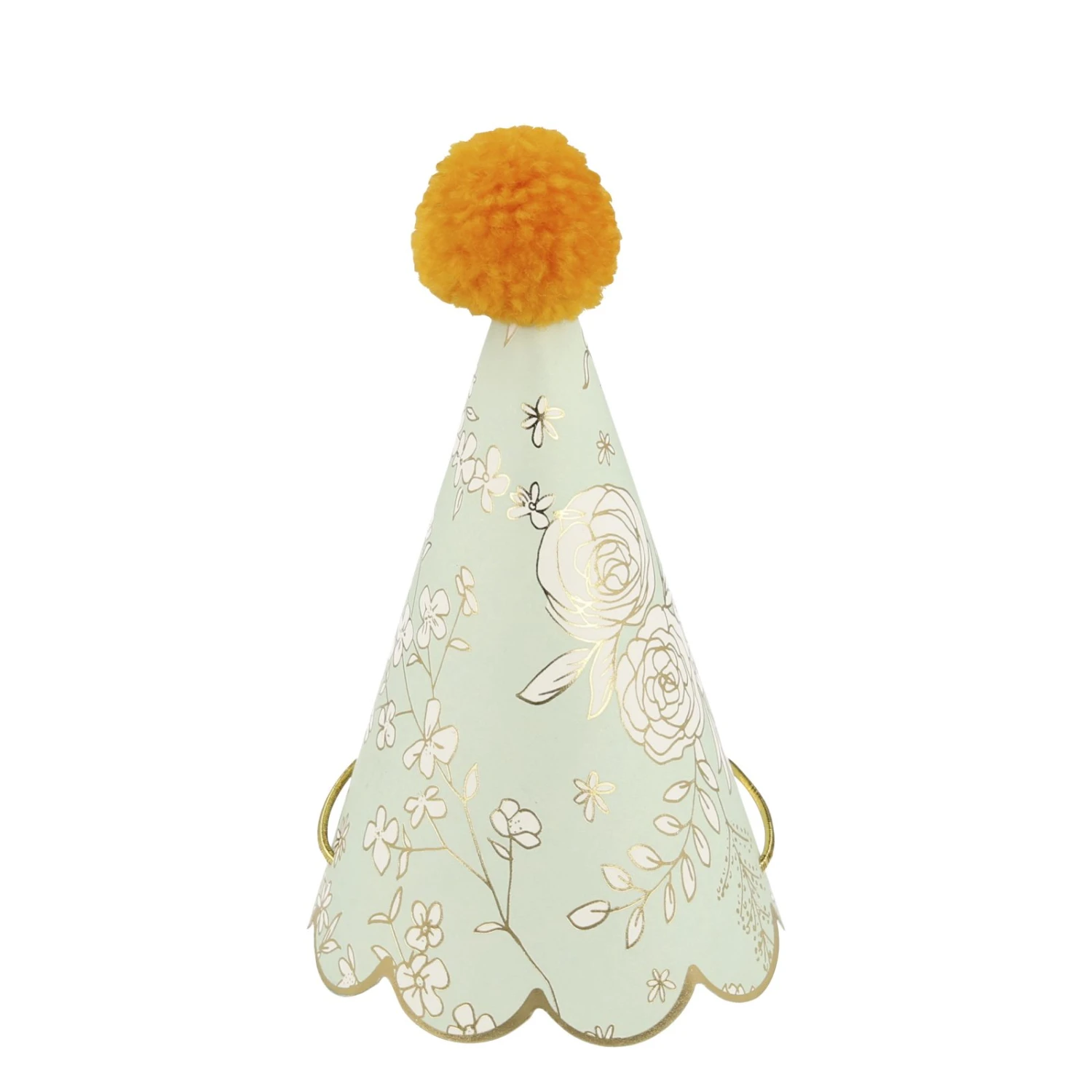These english garden party hats will look amazing at any party where you want your guests to accessorize in color and style! Featuring gorgeous floral patterns in eight different designs and colors, with gold foil details and a stunning scallop edge, all with a pretty pompom on top. Pack of 8 hats in 8 designs. Pompom with gold elastic. Gold foil detail. Product dimensions: 76 x 140 x 76 mm.