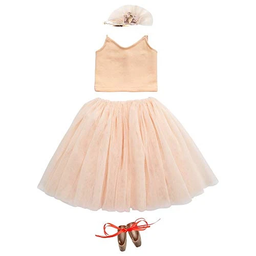 Turn your Meri Meri dolls into beautiful ballerinas with this dress-up kit which includes four items, packed in a special case. Featuring a pretty peach tulle tutu and jersey top, a sequinned hairclip and rose gold leatherette ballet shoes with bright coral ribbons. Peach tulle skirt with jersey crop top. Rose gold leatherette ballet shoes & tiara hair clip. Sequin & coral ribbon detail. Neon stitched suitcase. Pack dimensions: 5.75 x 5.75 x 2 inches Features Peach tulle skirt with jersey crop top Rose gold leatherette ballet shoes & tiara hair clip Sequin & coral ribbon detail Neon stitched suitcase Package Dimensions: 5.75 x 5.75 x 2
