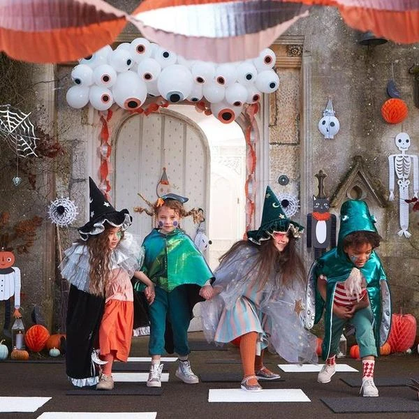 This fabulous garland crafted from creepy eyeball balloons is a terrific decoration for your Halloween celebrations. It’s easy to assemble and will both delight and thrill your guests. The pack includes 40 white balloons in two sizes and 40 eye details The instruction sheet included clearly explains how to assemble the garland Also included is a balloon strip, metallic silver cord to hang the garland up with, and 150 balloon glue dots The balloons can be filled with or without helium A balloon pump is recommended, but not included Simple self assembly required Suitable for ages 8+ Packaging made using eco-friendly paper Pack of 40 balloons Pack dimensions: 165 x 165 x 38mm