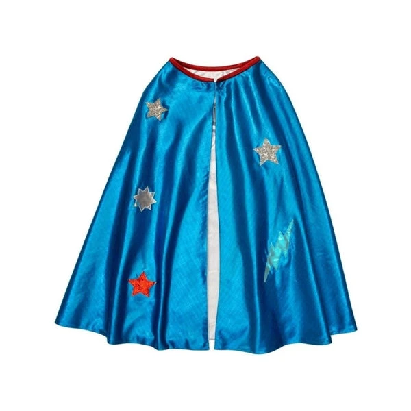 Meri Meri: Blue Superhero Cape Dress Up. Kids love to dress up as superheroes to save the world over and over again! So this fabulous Blue Superhero Dress Up Kit, which includes a cape, mask and cuffs, will be a much loved addition to their dress up box. This fabulous set includes a cape, mask and cuffs – a wonderful gift for a would-be superhero! The cape, crafted from lined blue lame, has glittery decorations glued and sewn on The red leatherette and felt mask is attached with silver elastic with a hook and loop fastener The red leatherette and felt cuffs have comfortable silver elastic to keep them in place Both the mask and cuffs feature brilliant blue stars for extra effect Suitable for ages 3-6 years Product dimensions: Neck – 457mm, Length – 610mm See the whole Meri Meri collection here.