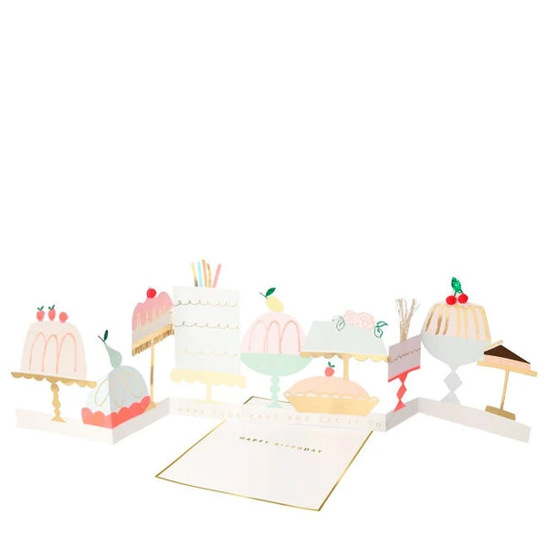 Meri Meri make the best birthday cards! This delicious looking card is perfect to send Happy Birthday wishes to someone who loves dessert time! Beautifully designed and crafted, the card folds out to reveal the yummiest looking cakes embellished with pretty pompoms, gold thread and shiny foil detail. Featuring the words “Have Your Cake And Eat It Too”, perfect to celebrate birthday decadence. Pompom & gold thread Neon print with gold & green foil detail Mint envelope Message: Happy Birthday (on insert) Made from eco-friendly paper Product dimensions: 178 x 127mm