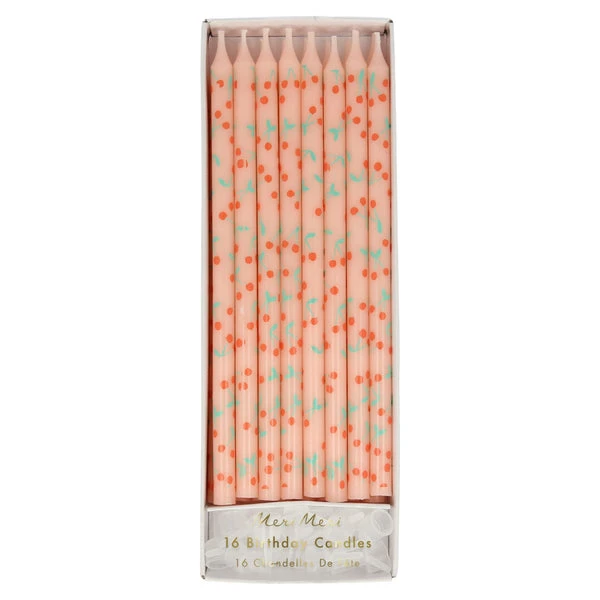 Make your cupcakes, or any celebratory cake, look so charming with these cherry candles. They are perfect for birthday cakes, or whenever you want a fabulous fruity effect. The candles feature a cherry transfer print They are tapered for a stylish look Pack of 16 candles Product dimensions: candle height – 146 mm Box dimensions: 60 x 175 x 16 mm