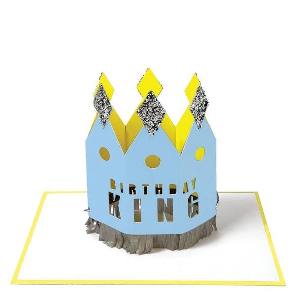 This cool card features a shiny wearable crown – perfect to add style to the birthday king’s special day! Beautifully embellished silver crepe paper glitter.