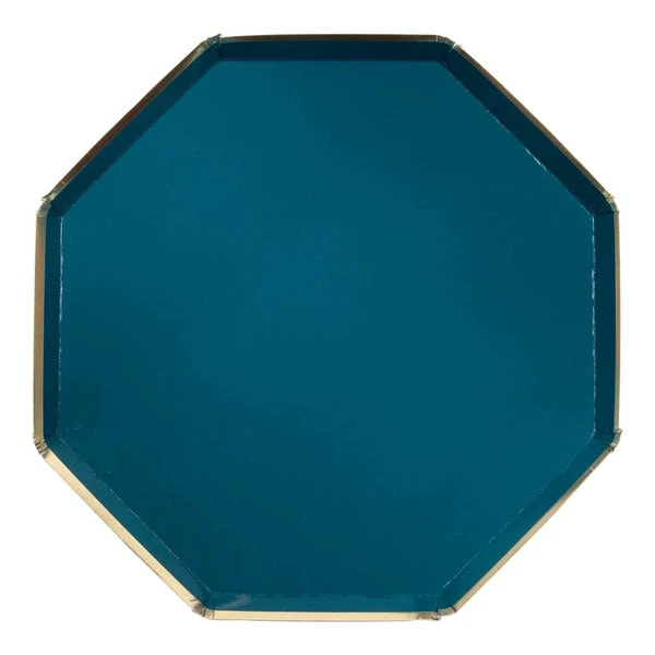 These large stylish plates, in a gorgeous dark teal colour with a shiny gold foil border, give guests plenty of room for satisfying servings. Made from high-quality card with a superb gloss finish. Printed both sides Gold foil detail Pack of 8 Product dimensions: 260 x 260mm SKU: 181333