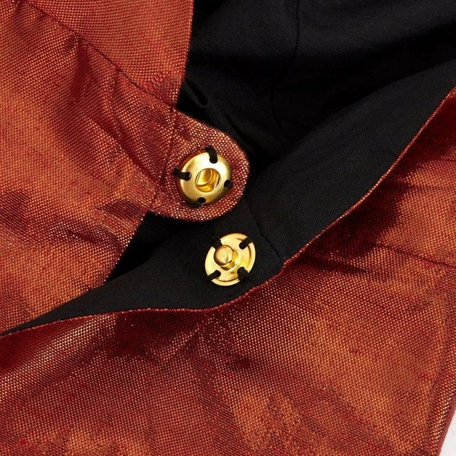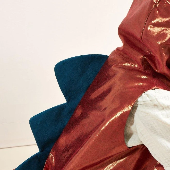 Little dino lovers will adore this Dinosaur Dress-up set from Meri Meri! It makes a fantastic gift and an excellent addition to a dress-up box. The hooded jacket is crafted from red and copper lame. It has felt facial details and spikes sewn on the back. Perfect for lots of roaring good fun! Details: – The hooded cape is crafted from red and copper lame, and lined with black polycotton – Embellished with black felt nostrils and eyes, and white felt teeth – It has fabulous blue cotton spikes sewn on the back for a dramatic effect – It has a silver snap fastener sewn onto the centre tab Recommended Age: 3-6 years Product dimensions: Neck – 495mm, Length – 813mm