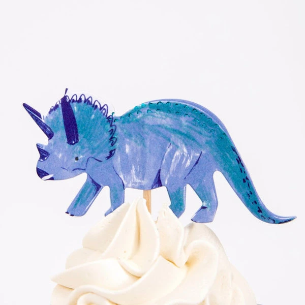 These dinosaur cupcakes will look absolutely terrific at a Jurassic birthday party! The kit contains twenty-four toppers with six fabulous designs, including a scary T-Rex and a crepe paper palm tree, and twenty-four cases with shimmering copper foil details. Themed toppers with 24 coordinating cupcake cases Green & copper foil detail Pack of 24 toppers in 6 designs Case dimensions: 64 x 32 x 64mm SKU: 202225