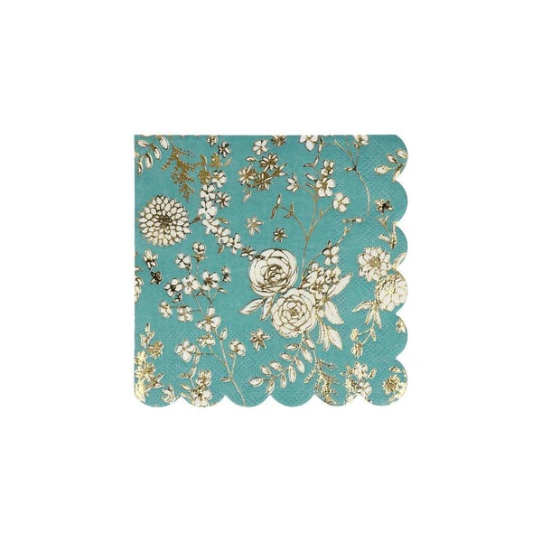 These beautiful English Garden Lace small napkins will add a touch of wonder and style to any party table. Available in four designs in pale pink, dark pink, blue and green, with a stylish scallop edge. Scallop edge Gold foil detail Made from eco-friendly paper Pack of 16 in 4 designs Folded dimensions: 127 x 127mm SKU: 204733
