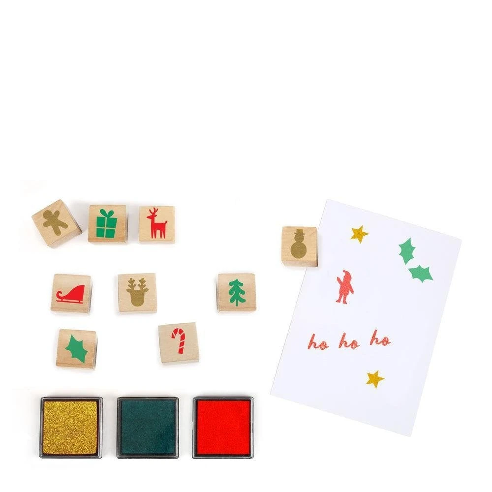 Count down to Christmas with this charming set of wooden stamps and ink pads.