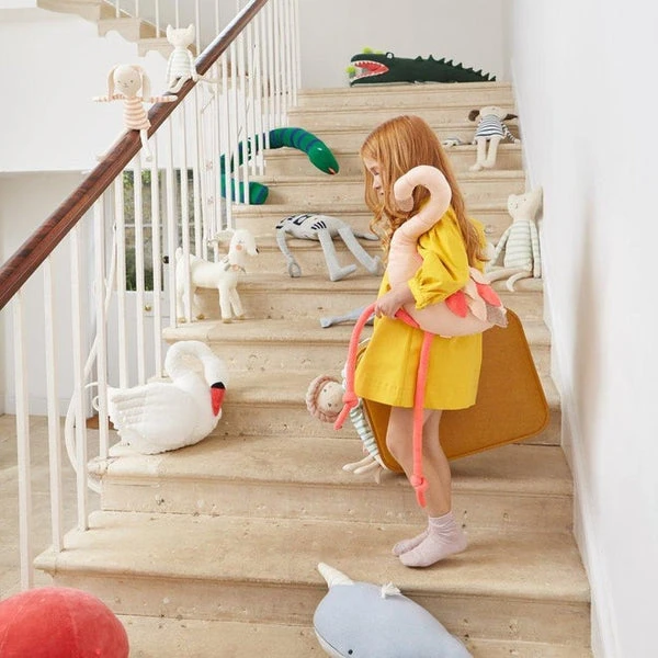 Ringo the flamingo will charm little ones with his adorable stitched features, dangling legs, and fantastic feathers. He’s made of knitted organic cotton and is the perfect companion for any child who loves the wild. Knitted organic cotton Stitched features & dangly legs Gold yarn detail Suitable for ages 0+ Product dimensions: 349 x 749mm SKU: 169552