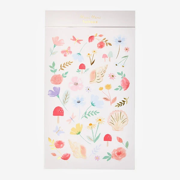 If you’re looking for temporary tattoos that little ones will love, then you’ll adore this floral set from Meri Meri. It features beautiful blooms, butterflies and mushrooms, with eye-catching gold foil details. Perfect for a party, or everyday fun! Floral Tattoo Sheets from Meri Meri. Set Of 2 Sheets. Shiny gold foil details. Suitable for ages 3+. Pack of 2 sheets. Pack dimensions: 152 x 254 x 3mm.