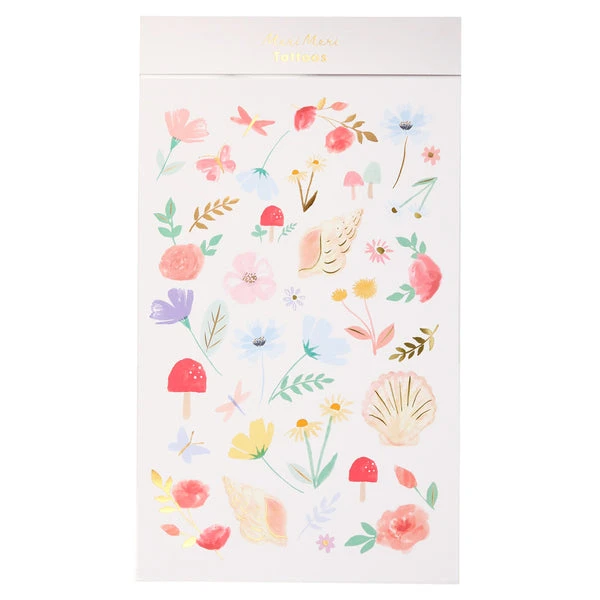 If you’re looking for temporary tattoos that are really delightful, then you’ll love this floral set. It features beautiful blooms, butterflies and mushrooms, with eye-catching gold foil details. Shiny gold foil details Suitable for ages 3+ Pack of 2 sheets Pack dimensions: 152 x 254 x 3mm 223668