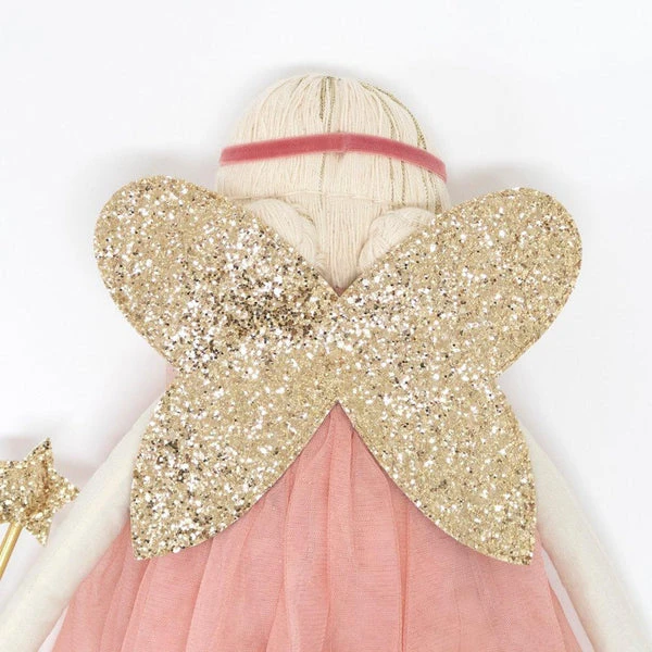 Freya fairy doll will make a most wonderful gift for children, and is perfect for hours of imaginative play. Beautifully crafted from cotton, with sweet stitched features and gorgeous gold fleck white yarn hair. She’s dressed in a pretty pink tulle dress with glittery fabric fairy wings, a shimmering star headband and a sparkly magic wand. Freya Fairy Doll from Meri Meri. Cotton with polyester filling. Stitched features with gold fleck white yarn hair. Dressed in pink tulle dress. Glitter fabric fairy wings with wand & star headband accessories. Suitable for ages 3+. Product dimensions: 191 x 489 x 83mm.