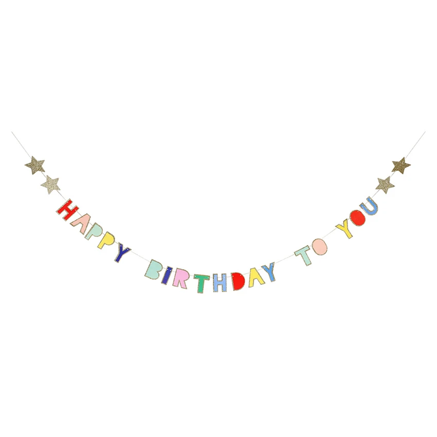 Throwing a surprise party or just a brilliant birthday bash? Then decorate your party space with this gorgeous garland. It spells out a cheery message of good wishes in bright, bold colors, embellished with gold glitter.