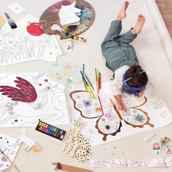 This colouring poster set from Meri Meri is a fabulous gift idea for the creative children in your life. Featuring two posters with magnificent jungle creatures, illustrated in gold foil, ready to colour in. Once finished, they can be hung up on the wall as fantastic bedroom decorations. Jungle Colouring Posters from Meri Meri. The set includes 2 posters featuring popular jungle animals. The animals are beautifully illustrated in gold foil. Suitable for ages 3+. Made from eco-friendly paper. Pack of 2 in 2 designs. Product dimensions: 762 x 502mm.
