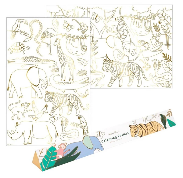 It features 2 posters magnificent jungle creatures, illustrated in gold foil, to colour in. Once they’ve finished, they can be hung up as fantastic decorations.