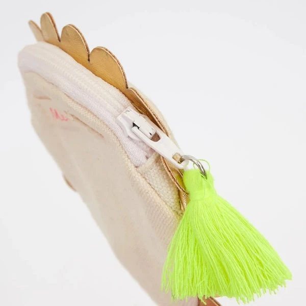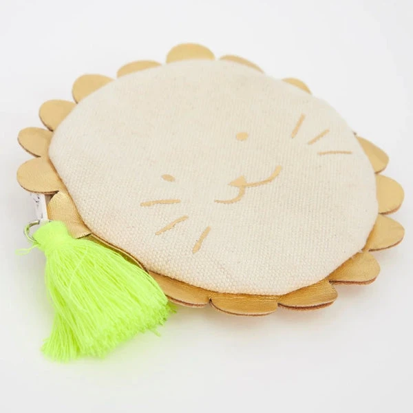 This totally wild pouch, in the shape of a lion’s face, is beautifully decorated with a shiny gold leatherette mane, a sweet gold foil face, and a neon pink zipper with an attached neon yellow tassel. Crafted from lined canvas, it’s perfect for storing precious little items in. Lined canvas Zip closure with tassel Gold mane with gold foil detail Product dimensions: 95 x 95 x 13mm SKU: 168769