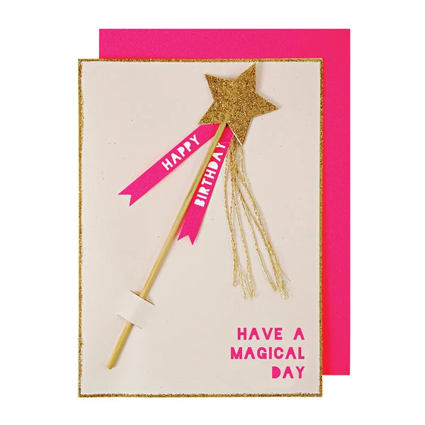 Birthdays only come round once a year, so it’s important you send your loved one many happy returns in the most special way possible! Why not add a touch of magic with this charming birthday card, featuring a magic wand with gold glitter star and sparkly gold thread. The card comes with a coordinating envelope. Inside message: Happy Birthday Detachable wand Product dimensions: 130 x 180mm 134272