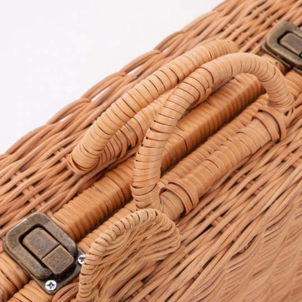 This rattan bear suitcase from Meri Meri is fabulous for taking essential items on adventures and picnics. It has wonderful 3D bear ears and sturdy rattan handles. Details 3D ears Eyes and nose are beads Rattan handle Dimensions 30.5cm x 25.5cm x 13cm