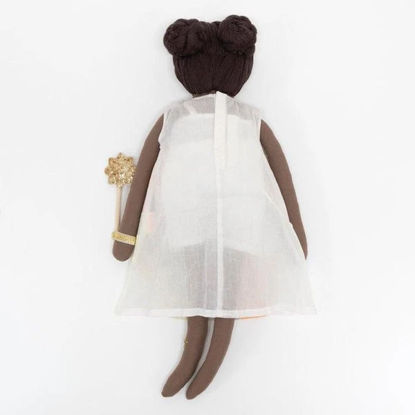 This is Mia, one of the Meri Meri classic fabric doll family. She’s soft and huggable and little people will just love to take her on adventures. She’s beautifully crafted from calico, with brown yarn hair and sweet embroidered features. Mia is stylishly outfitted in a pretty dress with a gorgeous rainbow embellishment, but she can easily be undressed and re-outfitted in any of our dress-up kits. Her hair is adorned with a glittery rainbow hair clip and she has a stunning sun wand. Mia is crafted from calico with a polyester filling She has sweet stitched features and beautiful brown yarn hair She is dressed in a pretty lined rainbow dress with neon stitching Her hair has a fabulous glitter hair clip and she comes with a sensational sun wand to cast happy spells with Neon and gold thread add extra stylish detail Suitable for ages 3+ Product dimensions: 7.125 x 18.5 x 3 inches SKU: 186118