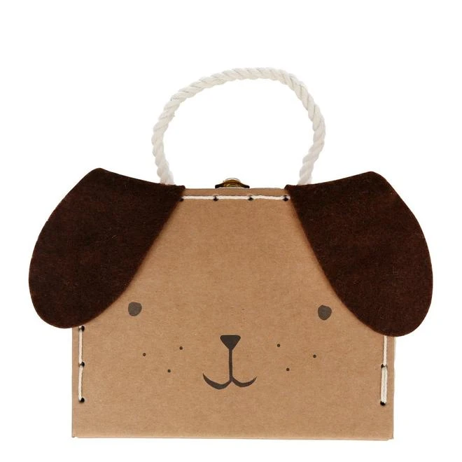 Mini Cagnolino con Valigetta Il regalo perfetto per tutti gli amanti dei pirati! Nella valigetta c’è un pirata di cotone con cappellino di feltro e spada Dettagli: età consigliata: 3+ anni valigetta in cartone con maniglia in pelle dimensioni (cm): 13 x 13 x 6