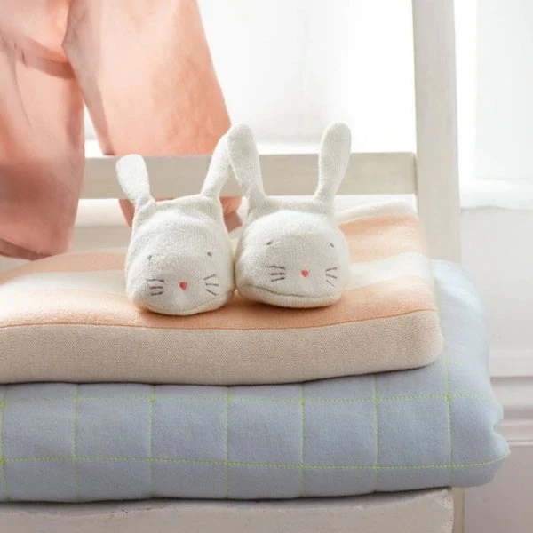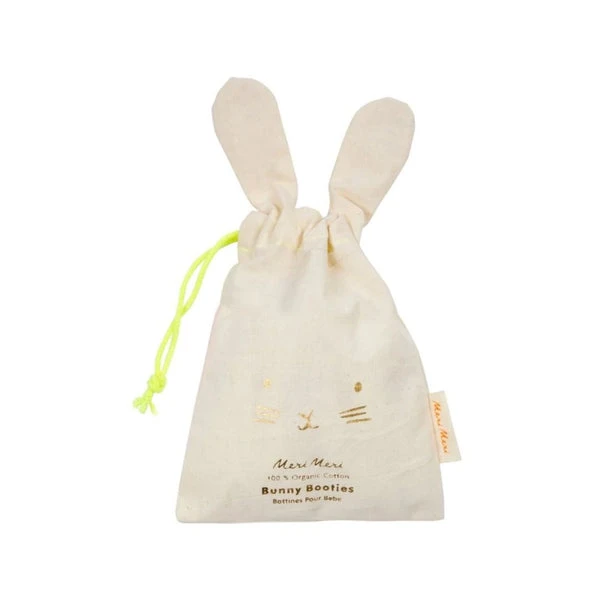 Meri Meri: Mint Bunny Baby Booties. These adorable bunny rabbit booties are carefully crafted from knitted organic cotton with a soft, mint green lining. They have delightful shaped ears and stitched features, and are presented in a beautiful bunny drawstring bag. The perfect gift for a new arrival. They are crafted from knitted organic cotton They have a mint lining with elastic ankle band The features are stitched and they have gorgeous floppy ears They are presented in a bunny style drawstring bag Suitable for ages 0-6 months Pack dimension: 146 x 178 x 51mm See the whole Meri Meri collection here.