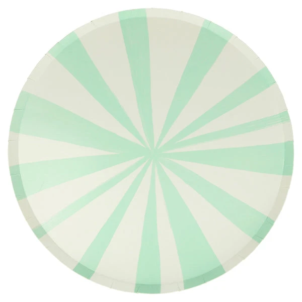 These mint green and white striped dinner plates will look super cool on your party table. They will complement your other tableware for a stylish effect. High quality 450gsm paper Made from eco-friendly paper Pack of 8 plates Product dimensions: 267 x 267 x 6mm Pack dimensions: 267 x 267 x 13mm 224460