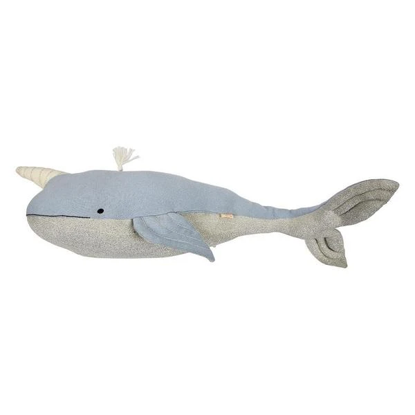 Otto the narwhal is made from knitted organic cotton and has adorable stitched features, a white tassel water spout, and a silver stitched horn. This beautiful sea creature is the perfect companion for any little one. Suitable for ages 3 & up Knitted organic cotton Stitched features & silver yarn detail Product dimensions: 750mm x 300mm x 190mm
