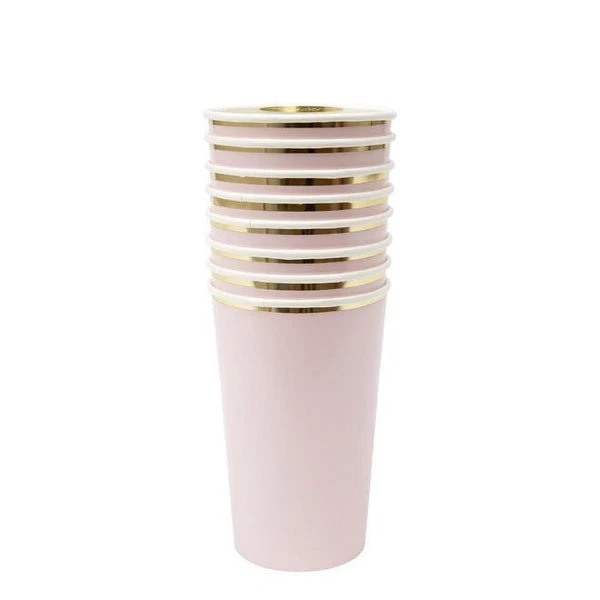 Serve drinks in style with these pale pinks highball cups with an elegant gold foil border. Made from high-quality paper with a superb gloss finish, suitable for hot or cold drinks. Suitable for hot & cold drinks Gold foil detail Pack of 8 Product capacity: 13.5oz