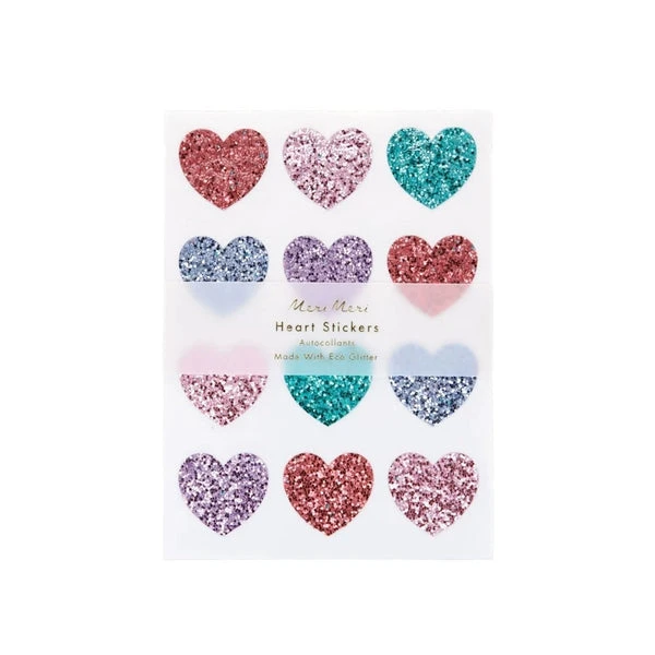 Meri Meri: Rainbow Glitter Heart Stickers. These wonderful stickers are ideal to add a glittering effect to cards, letters, posters, notebooks or craft projects. They are also perfect to pop into party bags or as a special gift for a friend. They are crafted from ECO glitter Suitable for ages 3+ Packaging made using eco-friendly paper Eco-friendly glitter Pack of 8 sheets Product dimensions: 140 x 191mm See the whole Meri Meri collection here.