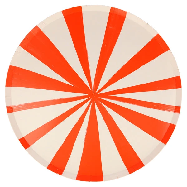 Why have plain plates when you can have sensational stripes? These red and white striped dinner plates will look vibrant on your party table. High quality 450gsm paper Made from eco-friendly paper Pack of 8 plates Product dimensions: 267 x 267 x 6mm Pack dimensions: 267 x 267 x 13mm 224442