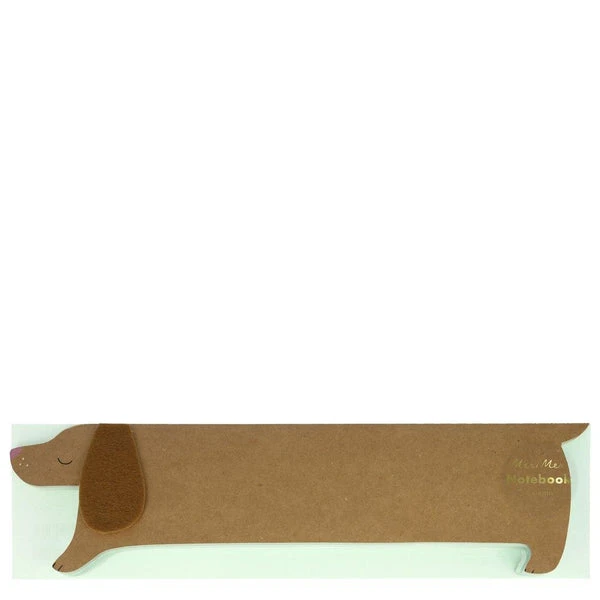 This fabulous notebook is perfect for little people (and adults!) who love on-trend sausage dogs, writing and drawing. The cover is a sensational sausage dog with a sweet flappy felt ear. Inside are forty mint-colored pages for making notes, writing stories or sketches. A lovely gift for a creative person. 40 mint pagesFelt earNeon print & gold foil detailMade from eco-friendly paperProduct dimensions: 28x 7.6 cm SKU: 205669