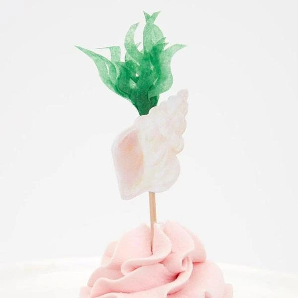 Meri Meri: Mermaid cupcake kit (set of 24 toppers). Make your cupcakes a highlight of your party with this fantastic mermaid cupcake kit. It includes 24 toppers, with 6 designs including beautiful mermaids, a seahorse and seaweed. The 24 cupcake cases feature 2 charming coordinating designs. The kit is presented in a special box, which makes a delightful gift. The 24 toppers, 4 x 6 designs, have lots of shiny blue and pink foil, and the seaweed topper is crafted from tissue paper The 24 cupcake cases have 2 pretty coordinating designs Packaging made using eco-friendly paper Pack of 24 in 6 designs Case dimensions: 64 x 32 x 64mm