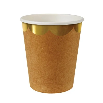 These kraft cups will be perfect for a moment of celebration. Their brown kraft color adorned with gold will give simplicity to your table decoration.
