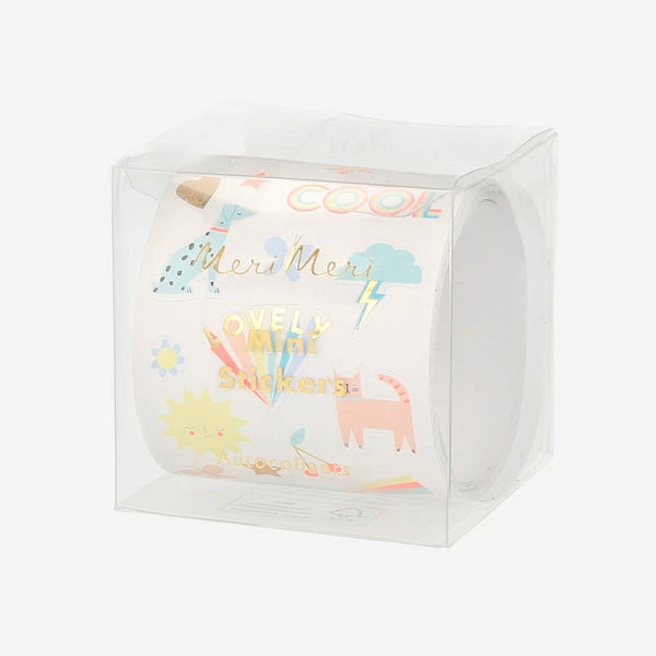 Add fun, colourful touches to notebooks, cards, gift tags or any creative projects with these delightful summery stickers from Meri Meri. They make a wonderful gift for kids, and are also great for party crafts. Shiny gold foil details Packaging made using eco-friendly paper Roll of 462 in 31 designs Pack dimensions: 64 x 64 x 64mm