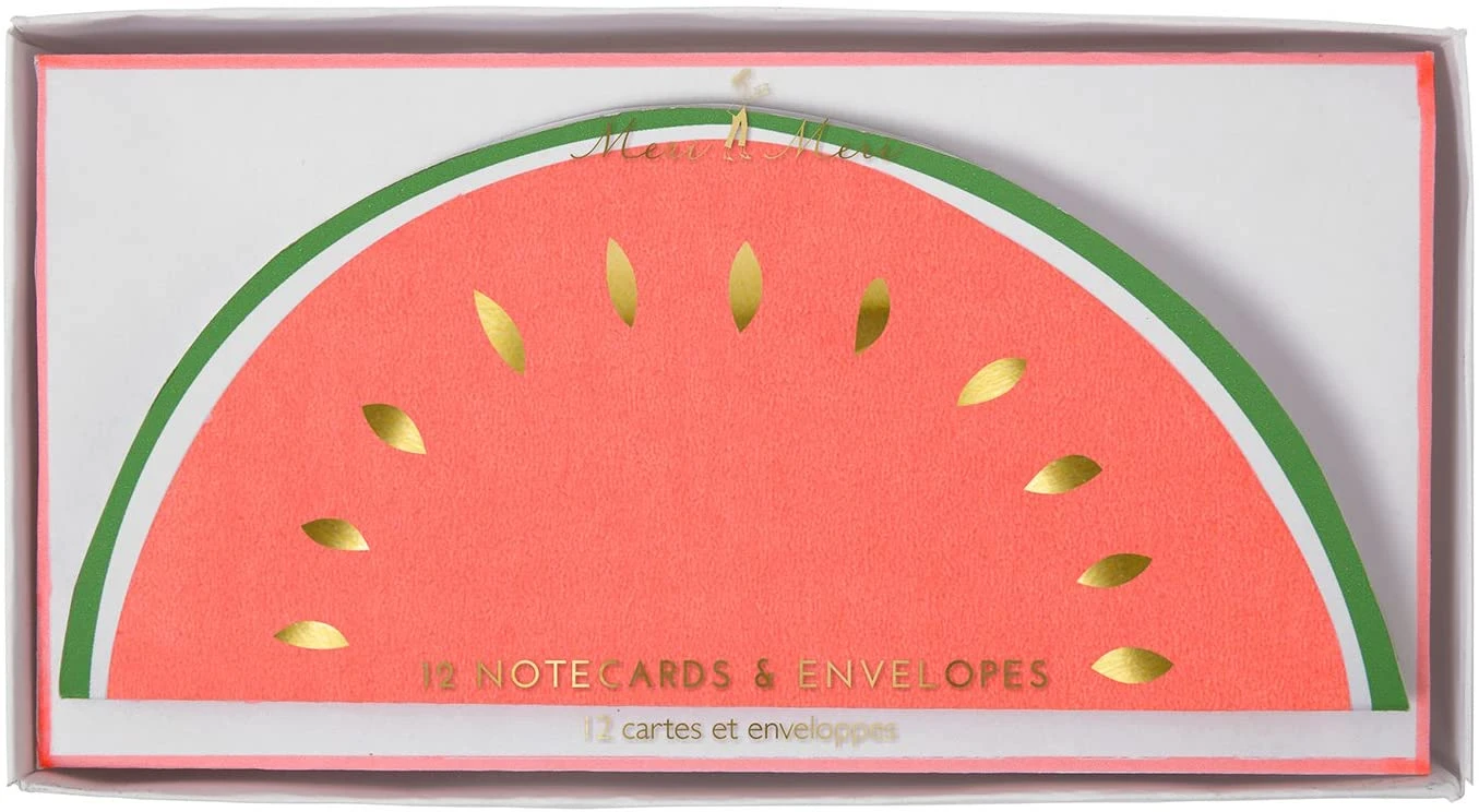 These luxury notecards have a fruity flavor. Featuring slices of watermelon, lemon, orange and pineapple, the cards are embellished with shiny gold foil and come with co-ordinating, colored envelopes. Pack contains 12 notecards in 4 styles and 12 envelopes.