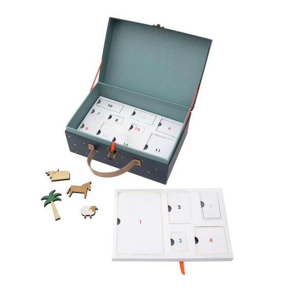 If youre looking for an advent calendar that is really special, then you will love this one. Each numbered day reveals a wooden piece to build up the nativity scene. Beautifully designed and crafted, this is a fabulous gift to receive and display. Themed suitcase with numbered trays. Reveal decorative wooden pieces to create festive scene.
